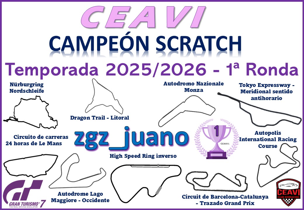 La clasificación Scratch, basada en las vueltas rápidas de carrera, coronó al piloto más veloz de toda la ronda: ZGZ_juano.